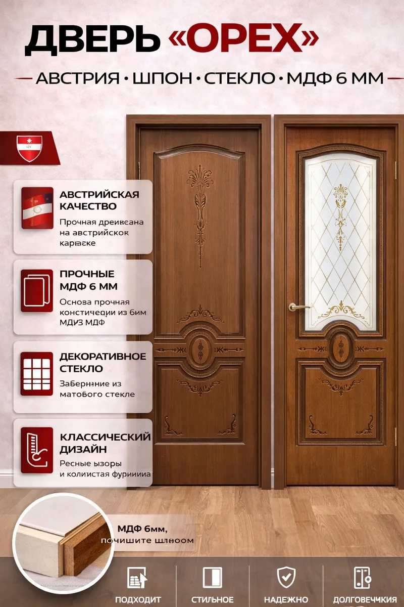 Дверь Австрия Орех Шпон Стекло МДФ 6мм